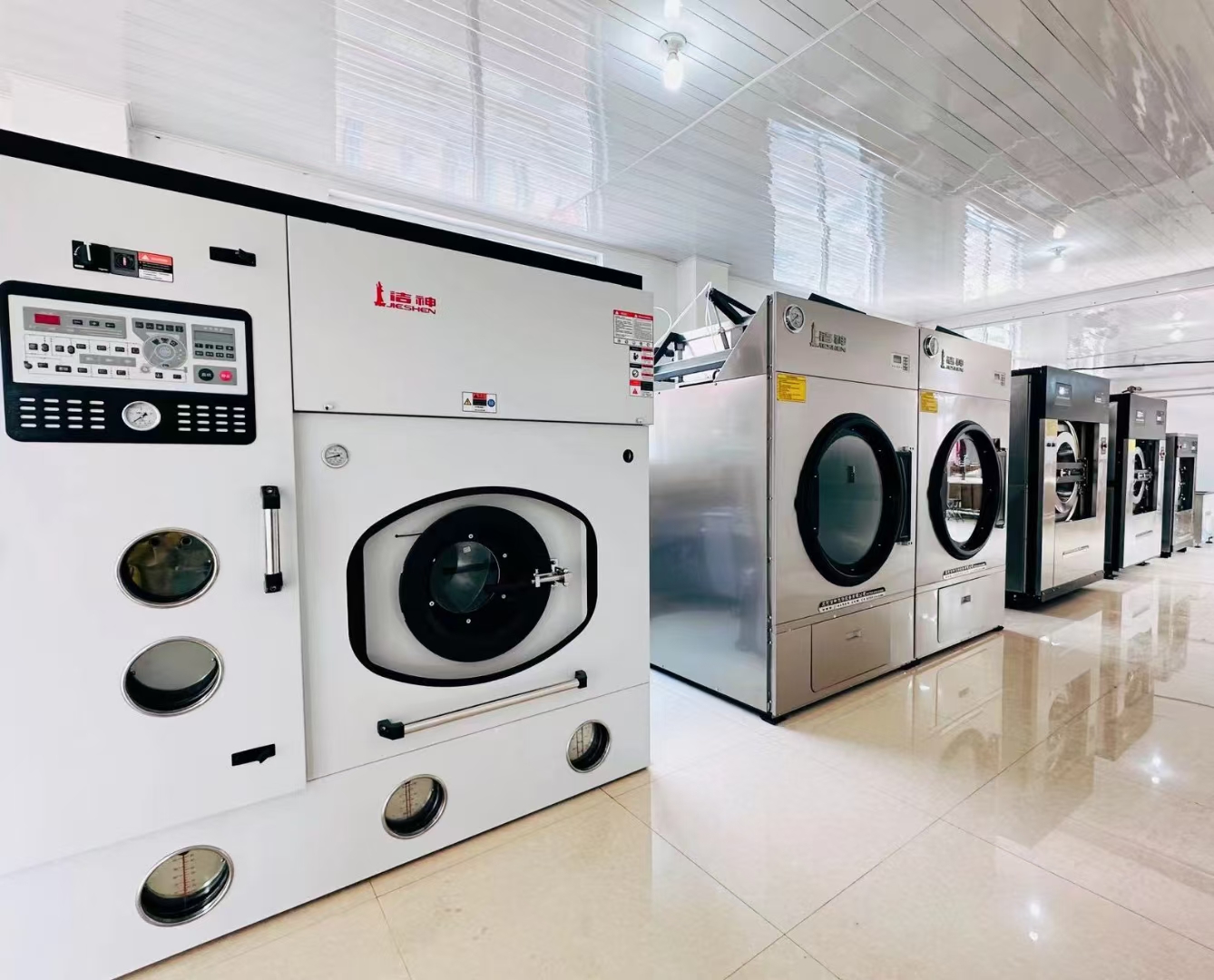 天津洗衣工廠店用戶柒喜洗護,使用三河潔神提供的干洗機(P220FDQP-C)一臺,16kg、30kg、50kg水洗機各一臺,50kg烘干機兩臺,設備投入使用至今持續穩定運行。
